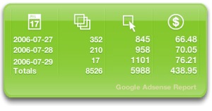 If you’ve got an Adsense account, this widget shows you stats from the last three days on your page views, clicks and income. Note: the figures in the above image are fictitious.
